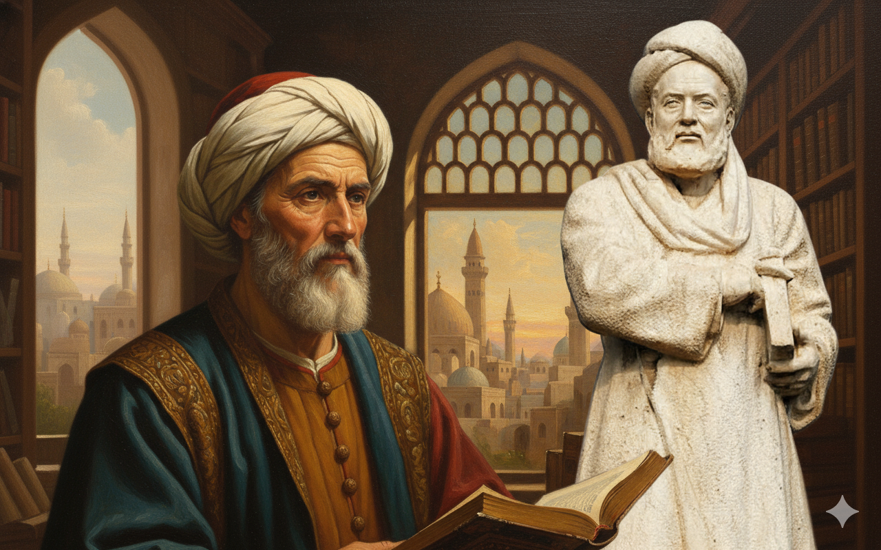 그는 아리스토텔레스의 철학(논리학, 자연학, 수학 등)을 체계적으로 정리했습니다. 특히 형이상학(존재의 근본 원리를 탐구하는 학문) 부분은 매우 중요하게 다뤄집니다. 그는 이 방대한 책을 요약한 『구원의 서』도 썼습니다. 이 책들은 그가 인간 존재, 이성, 신, 그리고 행복을 어떻게 보았는지 잘 보여줍니다. 아비센나는 이슬람 지성사의 상징 그 자체였습니다. 그의 철학은 훗날 유럽 세계에 엄청난 영향을 미칩니다. 중세 유럽의 스콜라 철학(신앙과 이성을 조화시키려 한 철학) 형성에 기여했습니다. 심지어 훗날 토마스 아퀴나스 같은 위대한 기독교 사상가에게도 깊은 자취를 남겼습니다. 아비센나는 이성과 신앙을 연결한 통합적 사유의 상징으로 오늘날까지 평가받고 있습니다.