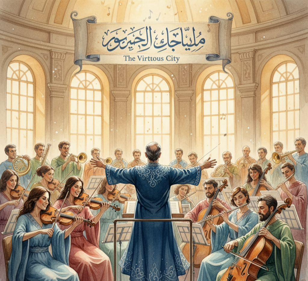 알파라비는 플라톤의 영향을 깊이 받았습니다. 그는 행복이 결코 개인전이 될 수 없다고 생각했습니다. 행복은 단체전입니다. 그는 덕 있는 도시라는 개념을 제시했습니다. 아무리 개인이 뛰어나도, 그가 속한 사회가 부패했다면 진정한 행복에 이를 수 없다는 뜻입니다. 이것은 오케스트라에 비유할 수 있습니다. 아무리 뛰어난 바이올리니스트라도 혼자서는 교향곡을 연주할 수 없습니다. 훌륭한 지휘자(알파라비는 철학자 왕이라 불렀습니다)가 필요합니다. 모든 연주자(시민)가 각자의 악기를 열심히 연습하고(덕을 닦고) 서로 조화를 이루어야 합니다. 그때 비로소 가장 완벽하고 행복한 연주, 즉 교향곡이 완성됩니다. 알파라비에게 행복은 죽은 뒤에 오는 막연한 선물이 아닙니다. 바로 이 세상에서, 훌륭한 공동체 안에서 덕을 실천하며 실현해 나가는 여정 그 자체였습니다. 이는 당시 종교 중심의 해석을 뛰어넘는 놀라운 철학적 시도였습니다.