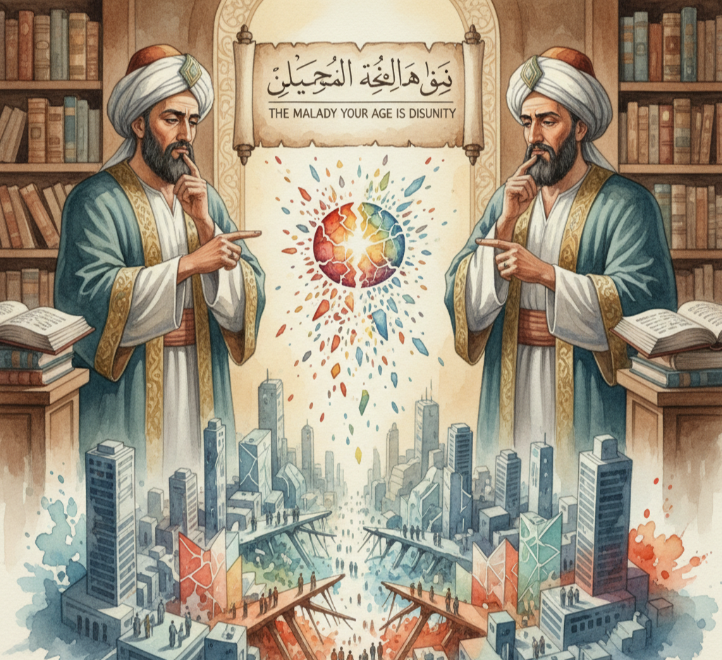 만약 1,000년 전 이슬람 황금기의 위대한 두 철학자, 알파라비와 아비센나가 21세기의 우리를 찾아온다면 어떨까요? 그들은 아마 우리의 놀라운 기술과 지식의 바다에 감탄할 것입니다. 하지만 동시에, 그 풍요 속에서 길을 잃고 목적을 잃어버린 영혼들을 발견할지도 모릅니다. 그들은 철학자의 역할을 의사와 같다고 믿었습니다. 의사가 몸의 병을 진단하고 치유하듯, 철학자는 영혼과 도시(국가)의 병을 진단하고 치유합니다. 아마도 두 철학자는 우리 시대를 이렇게 진단할 것입니다. "당신들의 시대가 앓는 병의 이름은 바로 분열'입니다." 진리가 여러 조각으로 나뉘어 버렸습니다.