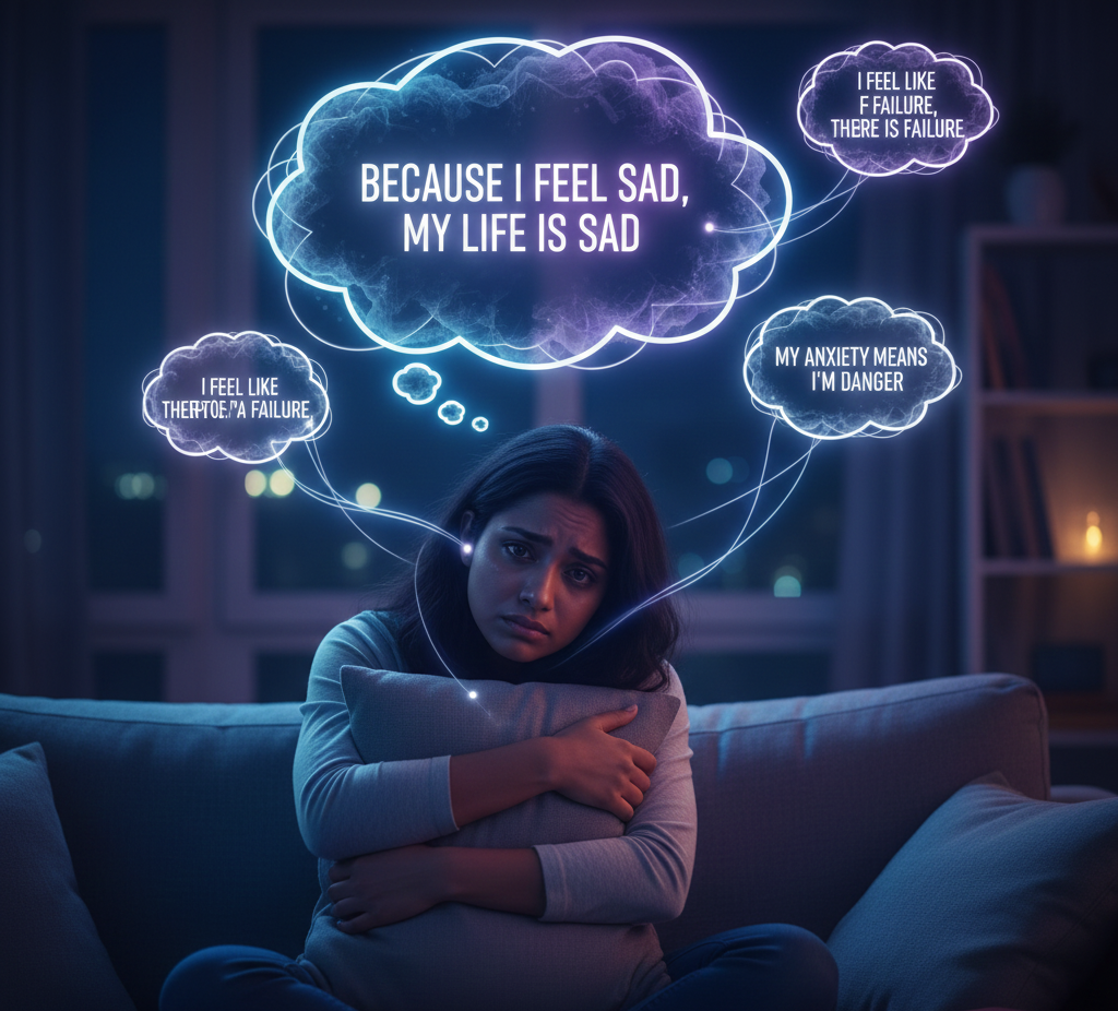 감정적 추론은 자신의 감정이 곧 현실의 증거라고 믿는 왜곡입니다. 내가 그렇게 느끼니까, 그것은 사실임에 틀림없다라고 생각하는 것입니다. 예를 들어, 내가 지금 불안감을 느끼고 있으니까 지금 정말 위험한 상황이 분명해 또는 내가 실패자처럼 느껴지니 나는 정말 실패자가 맞아라고 믿는 식입니다. 감정은 주관적인 경험인데도 불구하고 이를 객관적인 사실로 혼동하여 판단하는 오류입니다.이들은 나는 지금 너무 불안하고 초조하니, 분명 좋지 않은 일이 생길 거야라고 확신합니다. 나는 지금 죄책감을 느끼고 있으니까 내가 뭔가 잘못한 것이 분명하다라고 스스로를 판단합니다.