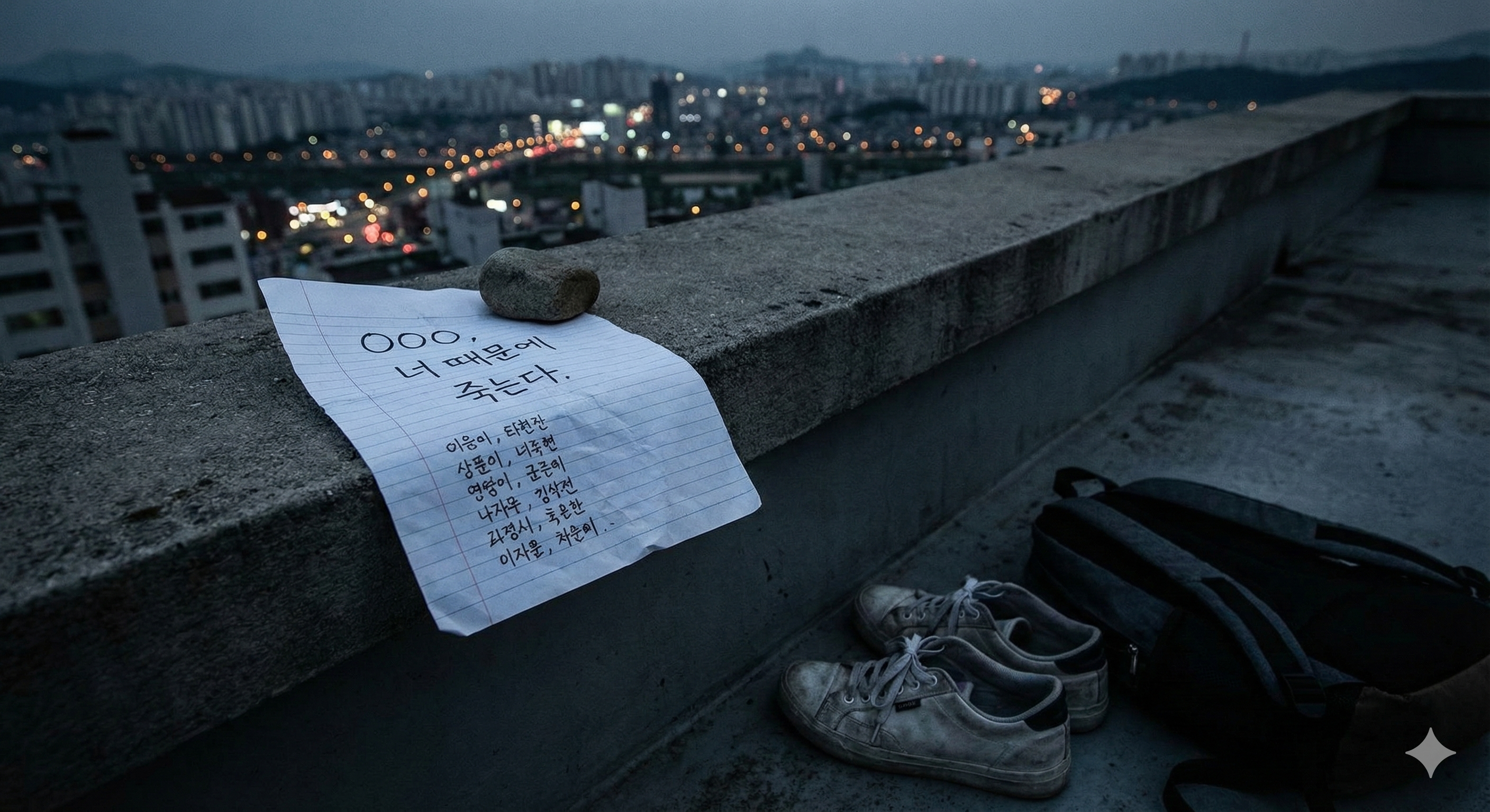최근 김포와 의정부에서도 초등학생, 고등학생이 학폭을 견디다 못해 아파트 옥상에서 몸을 던졌습니다. 유서에는 가해자들의 실명이 빼곡했습니다. "OOO, 너 때문에 죽는다." 아이들이 마지막으로 남긴 것은 사무친 고통의 몸부림입니다. 살인자들에 대한 저주이자, 사회를 향한 피 맺힌 절규입니다.