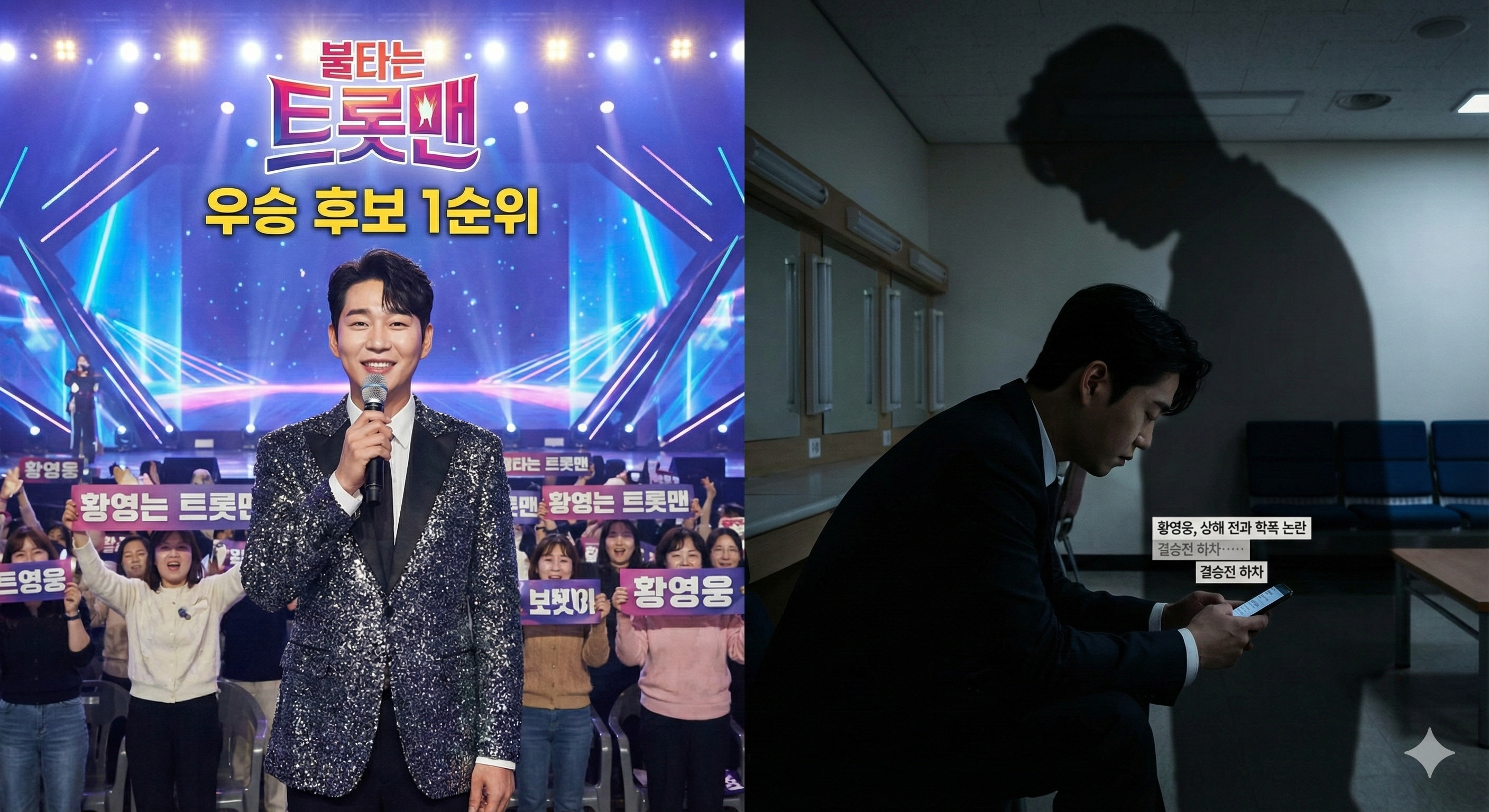MBN방송 불타는 트롯맨의 황영웅도 마찬가지입니다. 우승 후보 1순위였습니다. 우승하면 상금 6억원과 톱가수의 지위가 보장됩니다. 하지만 과거 상해 전과와 학폭 논란이 터지며 결승전을 앞두고 하차했습니다. 팬덤이 있었지만 돌아선 대중의 마음을 돌릴 수는 없었습니다.