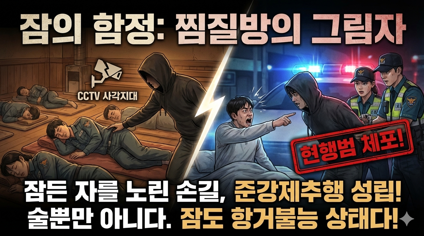 술뿐만이 아닙니다. 잠(Sleep) 역시 항거불능 상태입니다. 찜질방이나 사우나에서 옆에 자는 사람의 몸을 만지는 행위도 준강제추행입니다. CCTV 사각지대라 안 걸릴 것 같지만 피해자가 잠결에 느낌을 채고 소리 지르면 현행범으로 체포됩니다.