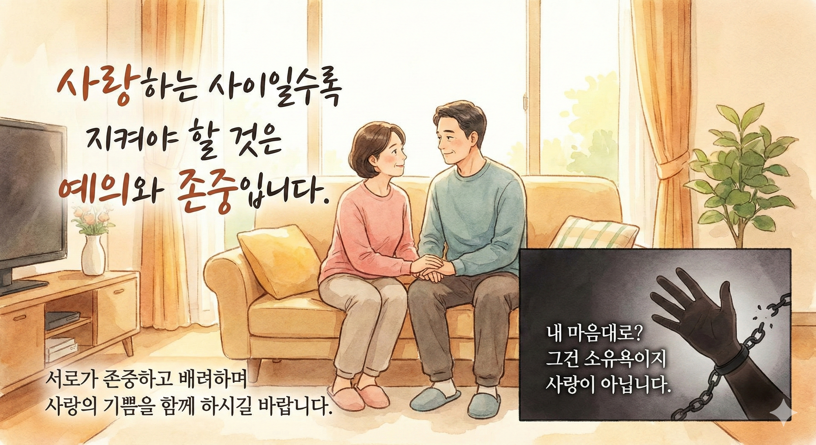 사랑하는 사이일수록 지켜야 할 것은 예의와 존중입니다. 내 여자니까 내 마음대로 해도 된다는 생각은 소유욕이지 사랑이 아닙니다. 가장 안전해야 할 집 안에서, 가장 믿었던 사람에게 당하는 성범죄는 피해자의 영혼을 무너뜨립니다. 성적 사랑은 부부 간 유대와 사랑의 감도를 높이는 숭고한 행위입니다. 부부 및 연인 간, 서로가 존중하고 배려하며 사랑의 기쁨을 함께 하시길 바랍니다.