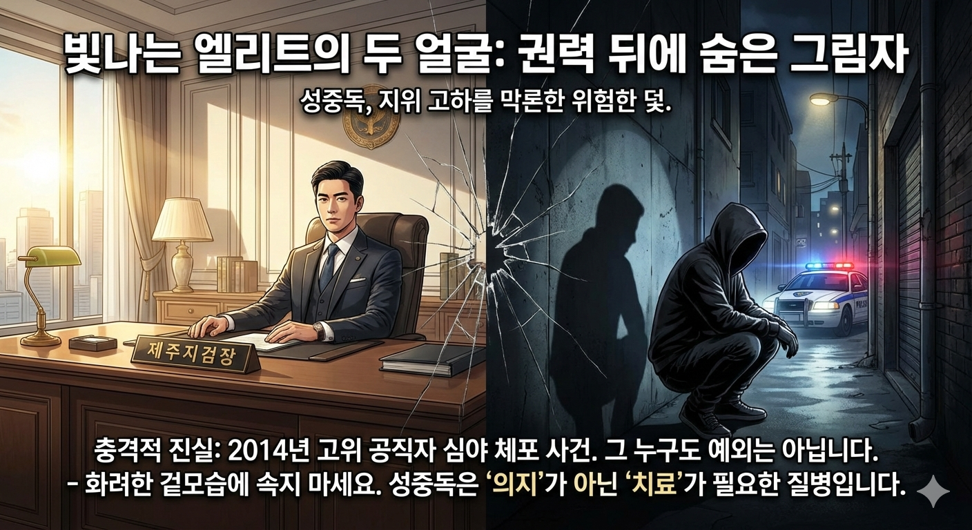성중독은 학력이 낮거나 의지가 약한 사람의 전유물이 아닙니다. 오히려 우리 사회의 소위 엘리트라고 불리는 고위층에서 발생하는 사례가 큰 충격을 주곤 합니다. 2014년 당시, 제주지검장이었던 고위 공직자가 심야에 길거리에서 부적절한 행위를 하다 체포된 사건은 우리 사회에 큰 경종을 울렸습니다.