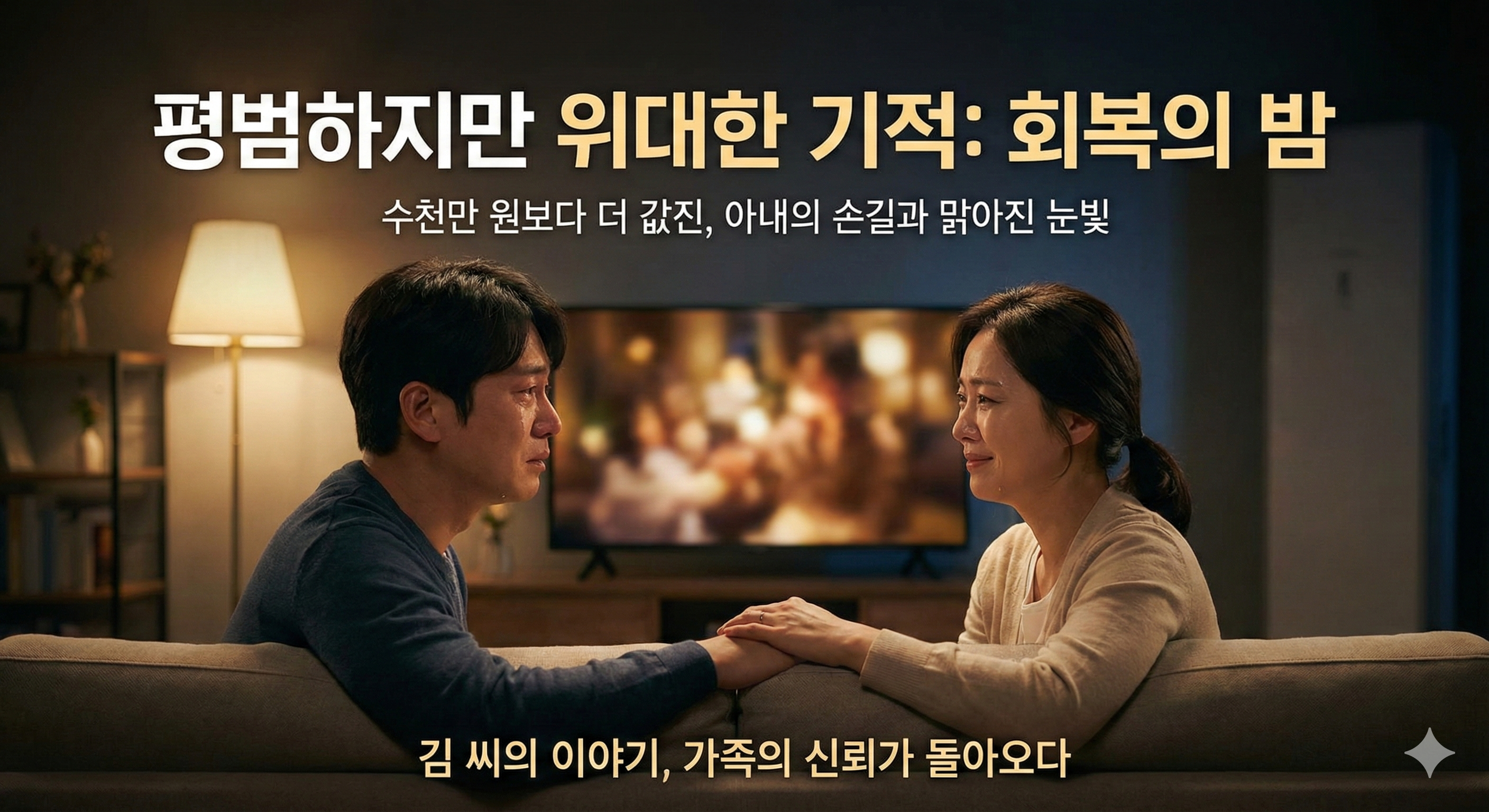 어느 날 저녁, 거실에서 함께 TV를 보던 아내가 그의 손을 가만히 잡았습니다. 그리고는 이렇게 말했죠. "당신의 눈빛이 예전처럼 맑아진 것 같아." 김 씨는 그날 밤 혼자 화장실에서 펑펑 울었습니다. 수천만 원짜리 명품이나 자극적인 성적 쾌락도 줄 수 없었던, 가족의 신뢰라는 평범하지만 위대한 기적이 그를 찾아온 것입니다. 이것이 바로 우리가 회복을 통해 얻고자 하는 진짜 보상입니다.