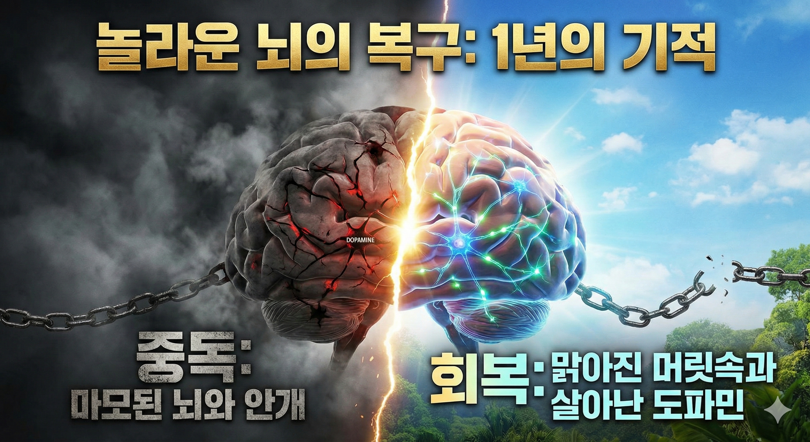 우리의 뇌는 놀라운 복구 능력을 갖추고 있습니다. 중독 기간 동안 마모되었던 도파민 수용체들은 성적 자극을 끊고 건강한 일상을 보낼 때 서서히 다시 살아납니다. 약 1년 정도의 회복 기간을 거치면, 안개 낀 듯 멍했던 머릿속이 맑아지는 것을 느낄 수 있습니다.