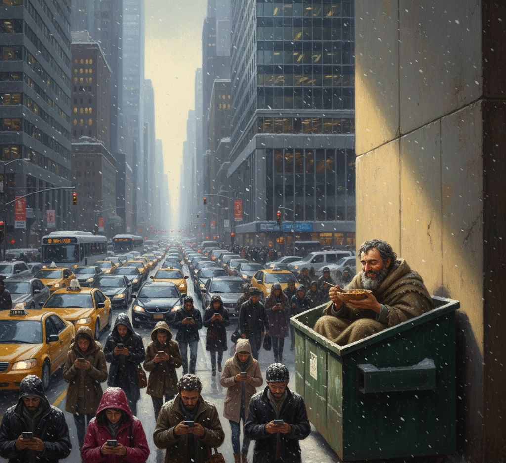 더 우스꽝스러운 건 뭔지 아나? 당신들은 그 물건들을 소유하기 위해 스스로 노예가 되기를 자처한다는 점이야. 나는 내 몸뚱이 하나 뉘일 술통 하나로 세상 어디든 내 집으로 삼았지만, 당신들은 30년짜리 노예 계약서(주택담보대출)를 손에 쥐고 내 집 마련의 꿈을 이뤘다며 기뻐하더군. 그 집이 당신에게 안식처를 제공하는가, 아니면 평생 갚아야 할 빚의 무게로 당신의 영혼을 짓누르는 감옥이 되고 있는가? 번쩍이는 새 차가 당신에게 이동의 자유를 주는가, 아니면 할부금과 보험료, 기름값 걱정에 당신의 마음을 묶어두는 족쇄가 되고 있는가?