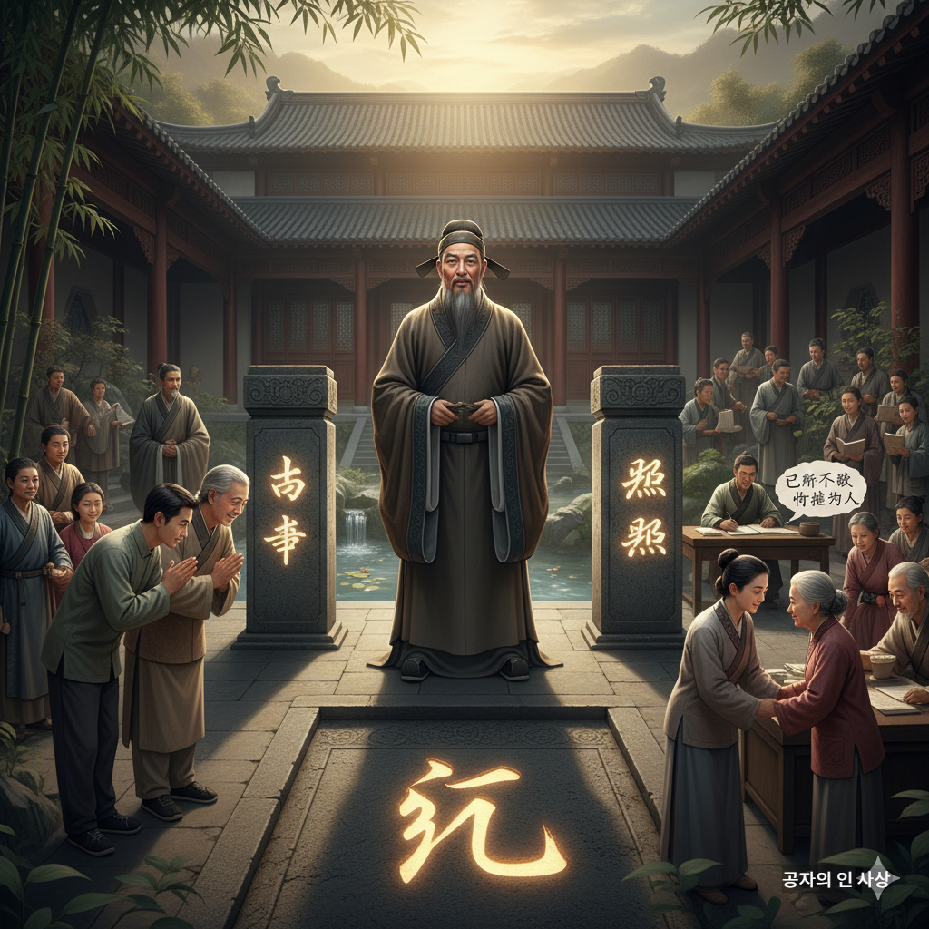 공자 철학의 알파이자 오메가는 바로 인(仁)이다. 인은 사람과 사람 사이의 관계를 의미한다. 공자는 인간다움의 본질이 바로 이 관계 속에서 발현되는 사랑과 배려에 있다고 보았다. 인의 시작은 효제(孝悌), 즉 부모님께 효도하고 형제자매와 우애롭게 지내는 것이다. 공자는 가장 가깝고 본질적인 관계에서부터 사랑을 실천할 수 있을 때, 비로소 그 마음을 타인과 사회로 확장할 수 있다고 생각했다.