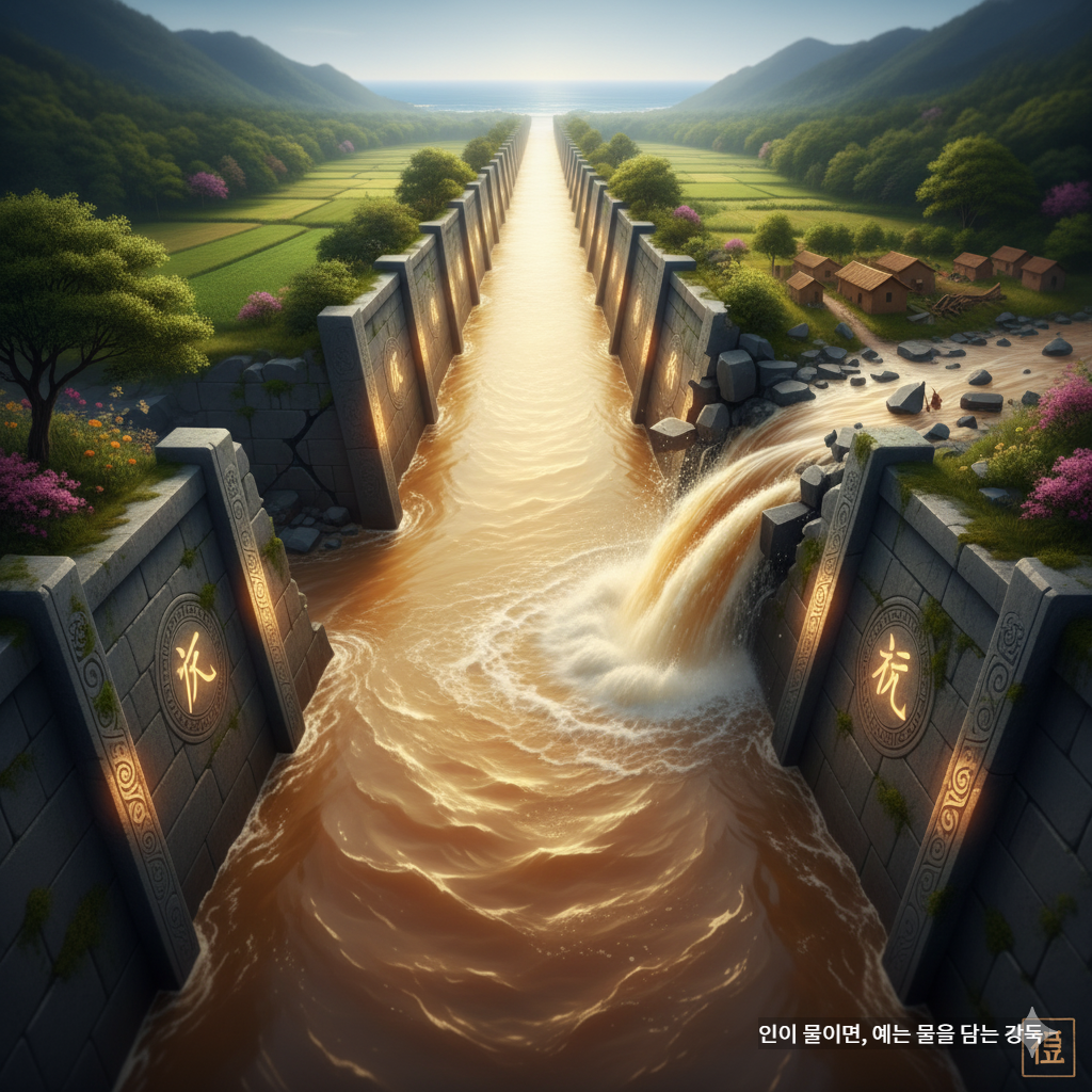 예를 강의 둑에 비유해보자. 인이라는 따뜻한 마음이 강물이라면, 예는 그 강물이 넘쳐 주변을 파괴하지 않고, 순탄하게 흘러 바다에 이르게 하는 둑이다. 둑이 없는 강물은 홍수가 되어 모든 것을 휩쓸어버린다. 마찬가지로 인이 있어도 예가 없으면, 그 마음은 제대로 전달되지 않거나 오히려 상대에게 무례함이 될 수 있다. 예를 언어의 문법에 비유해보자. 우리가 문법을 지켜 말할 때, 우리의 생각은 명확하고 정중하게 전달된다. 문법을 무시하고 제멋대로 말하면, 오해와 갈등을 낳을 뿐이다. 예는 인간관계라는 언어의 문법이다. "고맙습니다", "미안합니다"라고 말하는 것, 어른을 공경하고 아이를 사랑하는 것, 약속을 지키고 차례를 지키는 것, 이 모든 것이 예다. 너희의 온라인 공간을 보라. 그곳에는 예가 없다. 모두가 익명이라는 가면 뒤에 숨어 서로에게 칼날 같은 말을 아무렇게나 던진다. 그 결과는 무엇인가? 끝없는 갈등과 증오, 그리고 영혼의 상처뿐이다. 만약 너희가 온라인에서도 얼굴을 마주한 손님을 대하듯예를 갖춘다면 너희의 세상은 훨씬 더 평화로워질 것이다. 예는 너희를 불필요한 갈등과 오해로부터 지켜주는 갑옷이며, 너희의 인 을 가장 아름답게 표현해주는 무대다.