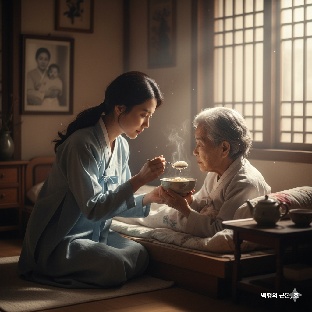 나는 효를 모든 덕의 근본이라고 말했다. 너희 시대는 효를 낡고 권위주의적인 가치라고 생각할지도 모르겠다. 하지만 효의 본질은 감사와 사랑의 자연스러운 발현이다. 너의 생명은 어디에서 왔는가? 바로 부모님에게서 왔다. 너를 낳고, 먹이고, 입히고, 밤새 간호하며 길러주신 그 은혜를 생각해보라. 그 은혜에 감사하고, 그분들의 마음을 편안하게 해드리려는 마음. 이것이 효의 시작이다.