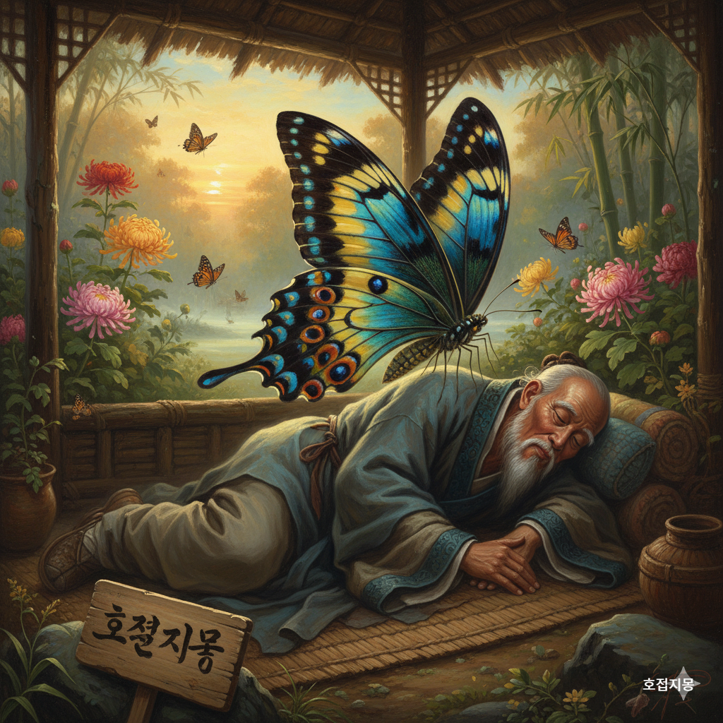 이것은 나라는 존재의 확실성에 대한 근본적인 물음이다. 우리는 '현실의 나가 진짜라고 굳게 믿고 살아가지만, 그 믿음의 근거는 무엇인가? 현실과 꿈의 경계가 이토록 모호하다면, 우리가 그토록 집착하는 나의 성공, 나의 슬픔, 나의 정체성이라는 것이 과연 절대적인 것일까? 호접지몽이 주는 행복은 내려놓음의 행복이다. 나의 존재가 고정불변의 실체가 아니라, 나비도 될 수 있고 장주도 될 수 있는, 끊임없이 변화하는 하나의 과정(物化)임을 깨닫는 데서 오는 자유로움이다. 삶을 너무 심각하게 받아들이지 않고, 한바탕의 즐거운 꿈처럼 유희하듯 살아갈 수 있는 여유, 이것이 나비의 꿈이 우리에게 주는 선물이다.