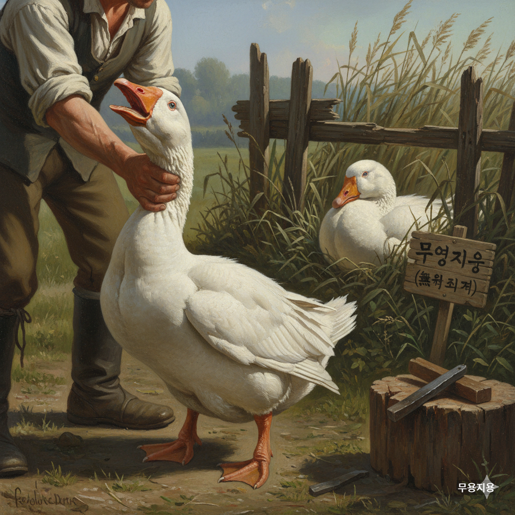 그러자 장자가 빙그레 웃으며 대답한다. "자네는 왜 그 나무를 아무도 없는 넓은 들판에 심어놓고, 그 아래서 한가롭게 거닐거나 편안하게 낮잠을 잘 생각은 못 하는가? 그 나무는 쓸모가 없기 때문에 도끼에 잘릴 걱정이 없고, 아무도 그 나무를 해치지 않을 것이네. 쓸모없음이 오히려 그 나무에게는 가장 큰 쓸모(用)가 된 것이지. 이것이 바로 쓸모없음의 쓸모(無用之用)일세." 곧게 잘 자란 나무는 베어져서 기둥이나 가구가 되지만, 구불구불 못생긴 나무는 베이지 않고 살아남아 거대한 그늘을 드리운다. 잘 우는 거위는 잡아먹히지만 못 우는 거위는 살아남는다. 이처럼 세상이 정한 '유용성'의 기준에 부합하는 것은 오히려 위험을 초래할 수 있다. 남들이 보기에 쓸모없다, 실패했다고 평가받는 삶 속에 오히려 누구도 방해하지 않는 평화와 자유가 깃들 수 있다는 것이 장자의 통찰이다. 도가의 행복은 이처럼 세상의 성공과 실패라는 이분법 자체를 무너뜨리는 데서 시작된다.