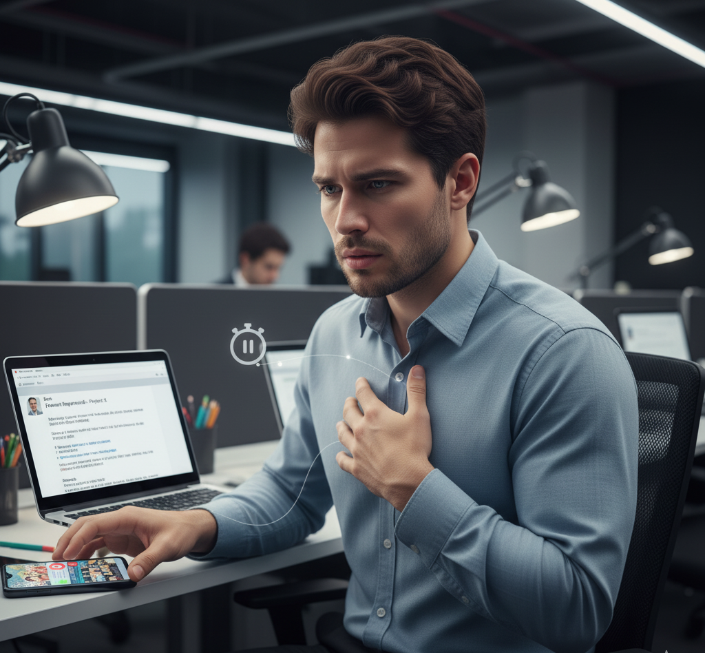 이 요인은 인지적 회피를 의미합니다. 심리적 고통이나 불편함이 감지됩니다. 뇌는 즉시 경보를 울립니다. 이때 두 가지 반응이 나옵니다. 대면또는 회피입니다. 주의 전환 반응 양식은 회피 전략입니다. 문제를 해결하는 대신, 뇌의 채널을 돌립니다. 고통스러운 생각(업무)에서 즐거운 생각(영상)으로 전환합니다. 이것은 단기적으로 매우 효과적입니다. 불편함이 즉시 사라지는 것처럼 느껴집니다. 마치 진통제 주사와 같습니다. 고통의 감각만 잠시 마비시킵니다. 하지만 문제 자체는 전혀 해결되지 않았습니다. 질책 메일은 여전히 그 자리에 있습니다.